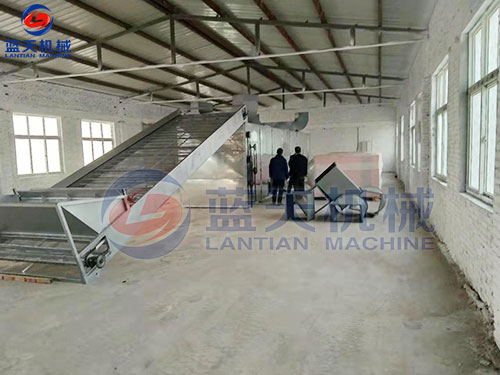 山東省臨沂市金銀花種植歷史悠久,種植面積大,金銀花產量高,對這種大面積種植產量大的客戶來說,選擇網帶烘干機是合適的選擇了??蛻袅硕ㄖ屏艘慌_金銀花網帶式烘干機,安裝人員進行安裝試機。